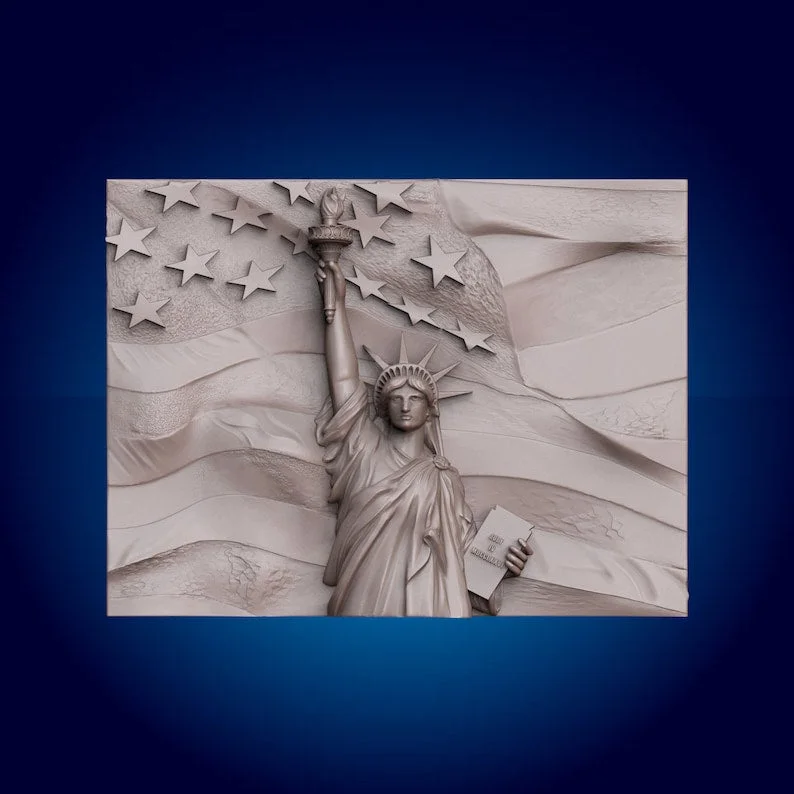 Staute of Liberty,flag,america 3D CNC Router Files, 3d Stl File, Vectric,aspire,easel, Cnc Cut Files, 2.5d Files
